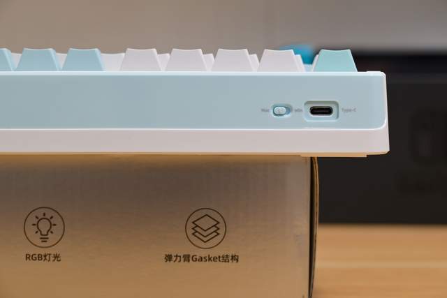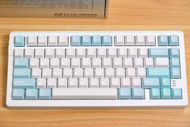 首先外观方面达尔优A81在设计上做的非常出色,外观线条简单流畅,造型美观,人体工程学微倾斜设计,81键精简紧凑按键布局,相较于全键盘要更加小巧便携,配色采用白蓝拼搭的小清新风格,整体设计简洁、时尚,造型干净利落,两种配色可选,很符合青年人追求个性简约的审美标准。基本能够满足大多数用户的桌面搭配需求。