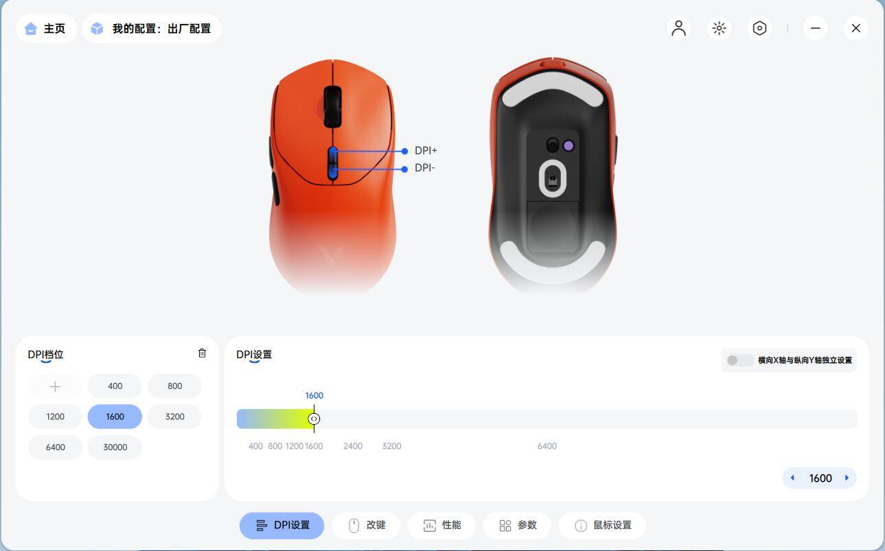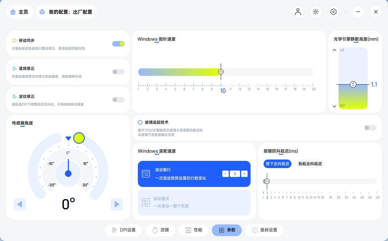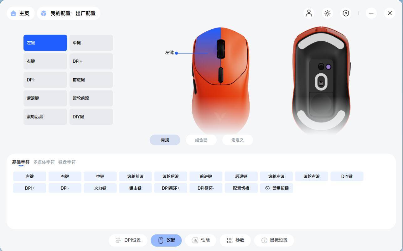 在A HUB驱动软件提供DPI设置、改键、性能、参数以及鼠标设置五大页面,布局简洁直观,让玩家能够快速找到需要调整的选项。支持游戏与配置文件联动功能,玩家可针对不同游戏创建专属配置文件,在开启游戏时,鼠标自动切换至相应设置,无需手动调整。