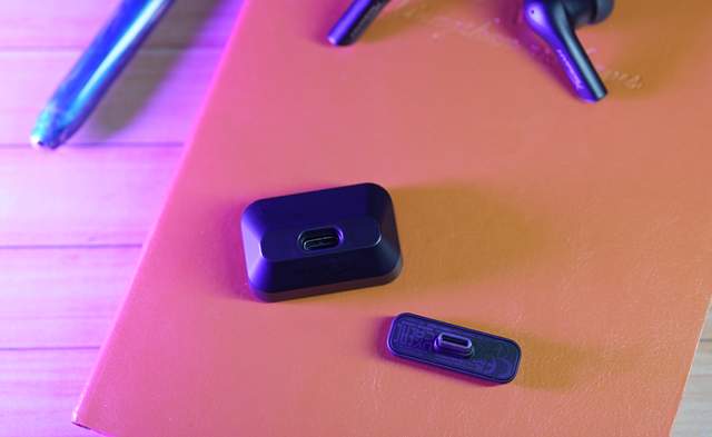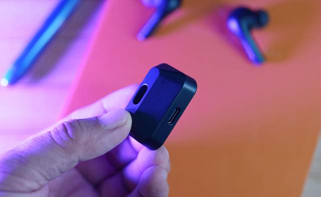 ▲充电盒底部就是充电接口了,也是配置了目前最主流的TYPE-C,内置410mAh锂电池,左右单元为260mAh锂电池。使用蓝牙模式单次续航能力达到10小时,搭配充电盒可延长23小时,那么就是能达到33小时,不错。如果使用低延迟模式,耳机单次续航能达到6小时,充电盒可延长15小时,高强度手游和电竞来说,单次6小时的连续续航能力确实够用了。