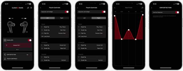 ▲HyperX Cloud MIX Buds真无线电竞耳机支持手机app,在应用商店搜索Ngenuity App即可获得下载通道,下载后进行配对,app内可对输出的均衡器进行调整,有固定模式和自定义模式,还可以对耳道内进行识别,比如取出某只耳机后,会自动停止播放,另一只不会受影响,还可以对耳机的触控响应功能进行调节,非常全面的一款app。