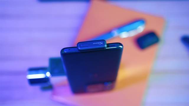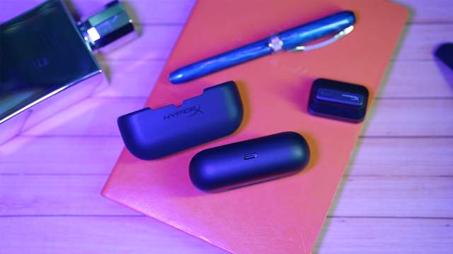 ▲充电盒比较有意思,搭配了一个硅胶防护套,提高了充电盒的抗摔能力和使用寿命,充电盒采用椭圆形设计,全黑磨砂漆面,中心标注了HYPERX的主产品LOGO,增加了品牌的辨识度。