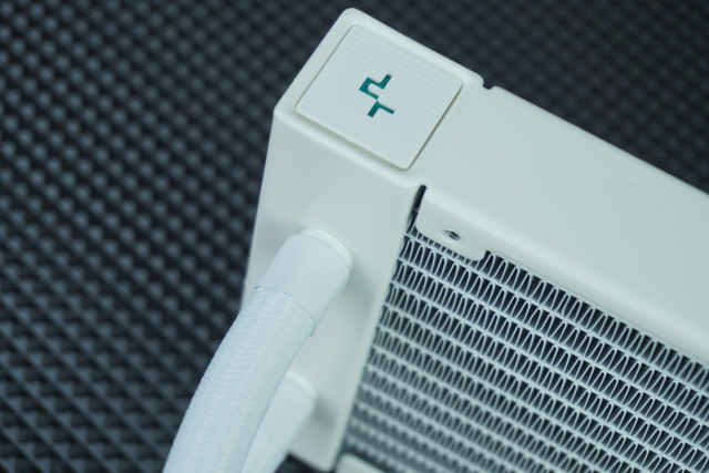水管与冷排结合处还贴心设计有一个小LOGO,简约时尚。