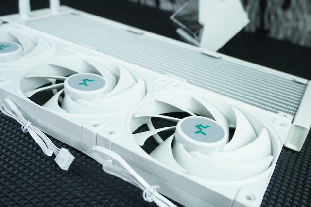 这次冰魔方360没有配备RGB风扇,全白色的感觉仍然拉升颜值高度。水冷通常因为风扇数量的原因会产生略高的声音,而为了控制音量就需要在轴承方面做足文章。