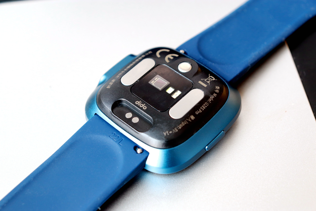 表盘屏幕尺寸为1.4寸,采用高清触控全屏,表盘侧面有一个按键,用于开关机、解锁屏、切换界面等。表盘背面是各种健康检测的识别区及磁吸充电口。