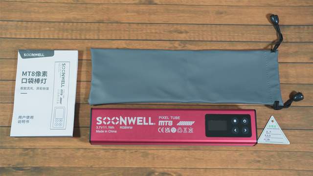 ▲拿掉包装后,就是配置清单了,包括颂威MT8像素管灯,说明书、收纳袋、合格证,并没有配置充电线,这个希望后续要加配。
