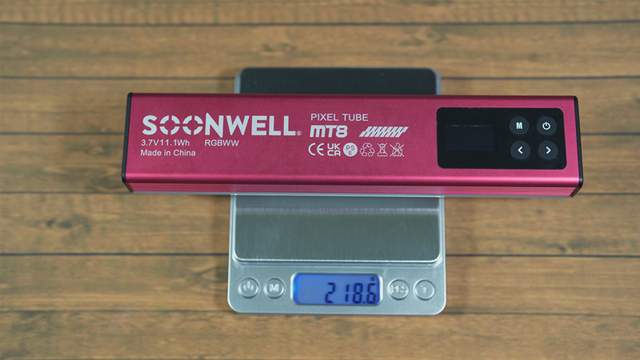 对颂威MT8像素管灯称重达到218g,相当的轻盈便携。一款小补光灯功能居然这么多样化,使用中磁吸可上脚架的机动性极强,色温范围2600K-6000K,HSI、拾音模式等非常使用,固定光和流动光都能非常不错的烘托氛围感,能够准确的照射出原彩色,内置3000mAh锂电池,低亮度模式可续航非常久,目前还没耗尽其点亮,最高亮度下可持续点亮2小时,完全够用,推荐推荐。