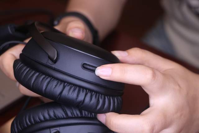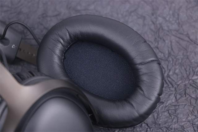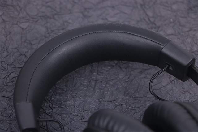 同样的本款耳机的头戴部分也是采用了记忆海绵和优质人造革材料,所以头戴部分带给人头部的压迫感会很大程度上被记忆海绵吸收掉,而且在生活中我们还有一个习惯那就是不使用的时候将耳机戴在脖子上,所以头戴的材质亲肤性也是很重要的。