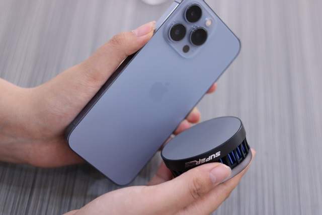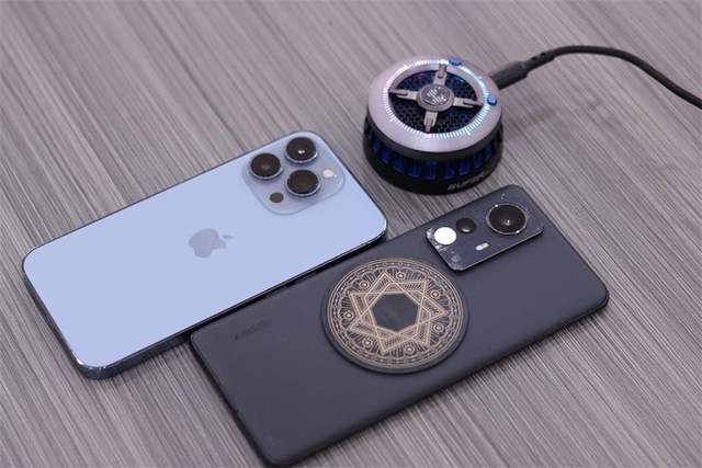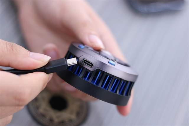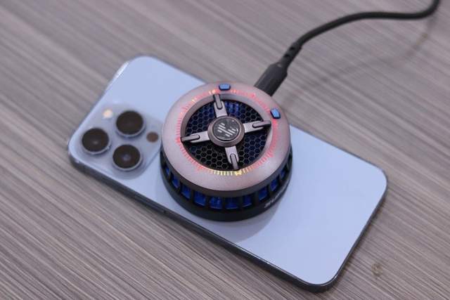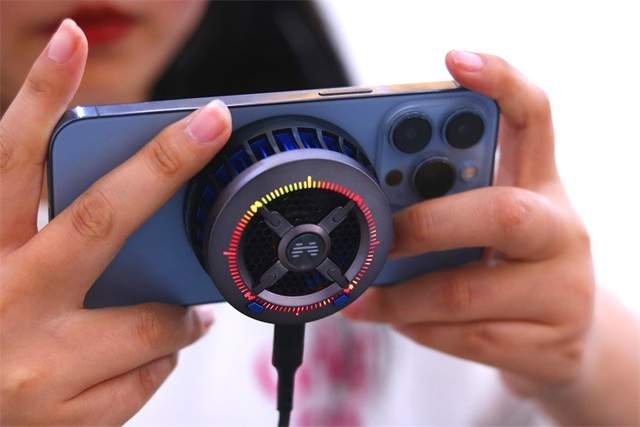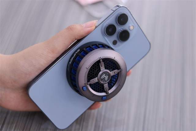 设备的背面则是制冷区了,制冷区直接和手机接触用以传导热量达到温度平衡,它本身带有磁性,而水果手机12及以上型号基本上都自带背磁,所以水果手机一般可以直接磁吸使用,而且磁吸稳定不易脱落。