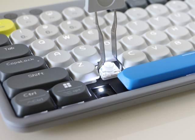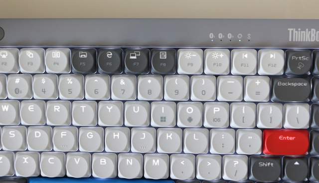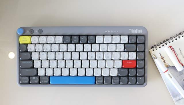 ThinkBook机械键盘KB Pro一样如此,我这款采用了深灰和浅白色的撞色设计,并可以自由DIY键帽,让自己的键盘与众不同。