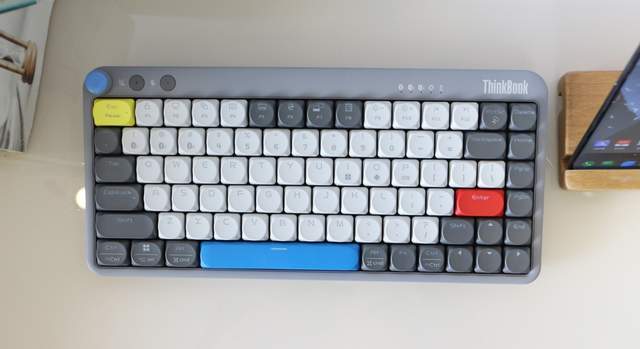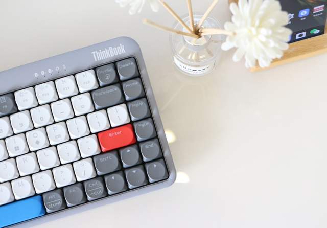相比于常见的机械键盘,ThinkBook机械键盘KB Pro拥有个性十足的配色、小巧的便携性以及可热插拔的定制矮轴和高效的键盘布局。