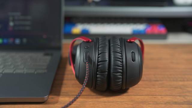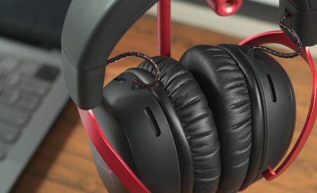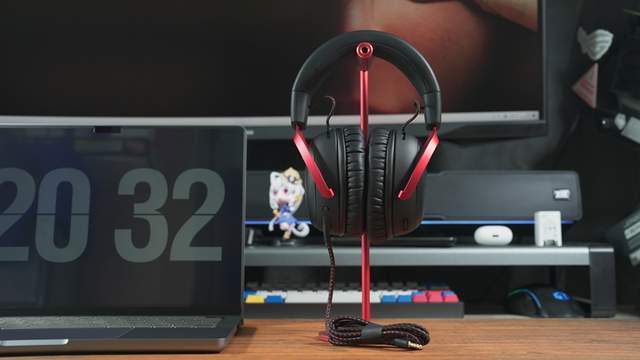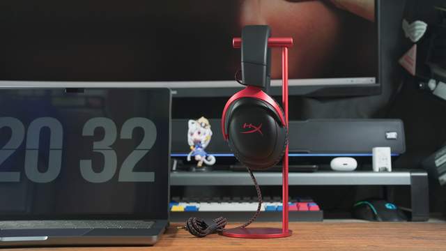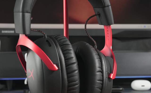 ▲HyperX极度未知飓风3头戴式有线游戏耳机,常规的外观设计,采用经典的黑红配色,有线耳机的设计理念基本就是纯粹的为了声音,有线单模输出最直接的好处就是不用充电,53mm大振膜输出单元,这种纯粹的为声音打造模式我比较喜欢,没有任何充电焦虑。机身选材用料方面,为红色金属框架+皮革+ABS材质打造,刚好与我这个耳机支架匹配上。