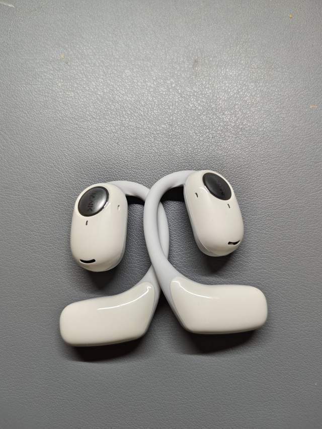 分体式设计让佩戴束缚感归零,开放双耳听音能让耳道始终保持清爽透气的状态,通过弧形的弹性硅胶耳挂,把重量分布均匀的机身挂在耳朵上,让出声孔可以轻轻搭在耳道出口,且耳机发声单元部分是可旋转的弹性调节设计,不挑耳型,听得见,又几乎感觉不到它的存在。直接感受是,我第一次体验戴了几个小时耳机,取下来时,耳道没有任何不适感,十分奈斯。