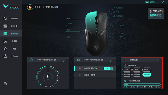 ▲驱动方面,登陆雷柏官网即可下载这款VT9 PRO的PC端驱动了,下载安装非常简单,可对分辨率、回报率、响应速度、按键编程、宏编辑等进行全面细致的调控,还有滚轮的翻页速度快慢,可板载三套设置等,而且是带定期更新的哦。