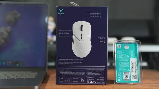 ▲雷柏的包装一直都是比较传统经典的,封面标注了雷柏品牌、型号、鼠标的外观实物图,底部标注了这款鼠标为有线无线双模连接方式。背部就是介绍了这款鼠标的几大核心功能,比较重要的就是10键可独立编程,除了鼠标还入了一款无线充电底部盖板,更换后就可以实现无线充了。