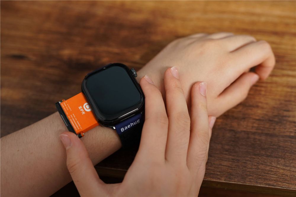 宝护光X8青少年电话手表的表带,因为采用了人体工学反扣设计,所以初次接触的话,孩子们还需要习惯一下,食品级硅胶材质不会刺激皮肤,内侧的透气排汗凹槽,在长时间佩戴的情况下,透气性也是蛮好的,干干爽爽不会出现不适感。