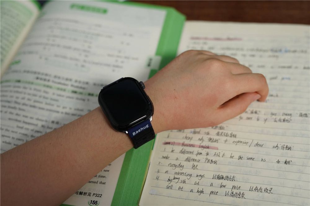 宝护光X8青少年电话手表,附赠的表带采用食品级硅胶材质进行制作,而且表带并没有采用常见的设计方案,则是采用人体工学反扣设计,内侧还专门有透气排汗凹槽,确保运动时也能保持干爽,即使长时间佩戴也不会刺激皮肤。
