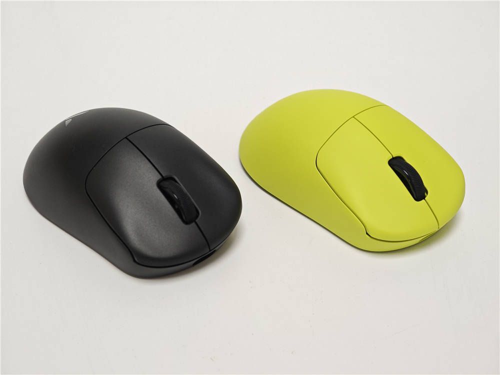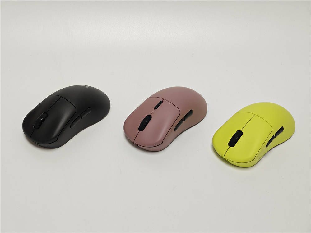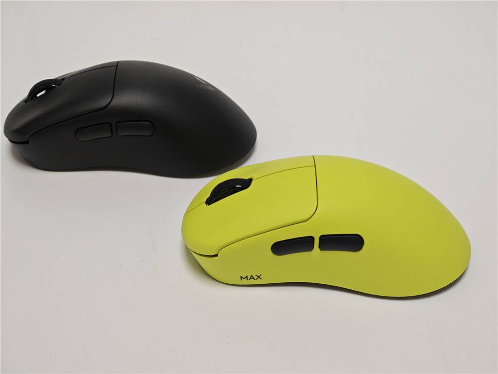 雷柏VT3s二代系列有VT3s和VT3s Max两个版本,有星空黑、皎月白、炽光黄、树莓粉等多款颜色可选,标准版的星空黑、皎月白为类肤磨砂工艺,彩色款采用亲肤防滑涂层,而MAX版则每个颜色都带涂层。以下的星空黑为标准版,炽光黄为MAX版本。