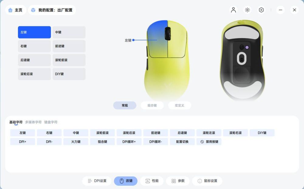 在A HUB改键界面中可以自定义鼠标各个按键的基础功能、多媒体功能、自定义组合键以及宏按键等,用户可以根据使用需求对鼠标的按键进行修改。每个键都可以设置独立功能或映射键盘组合键,