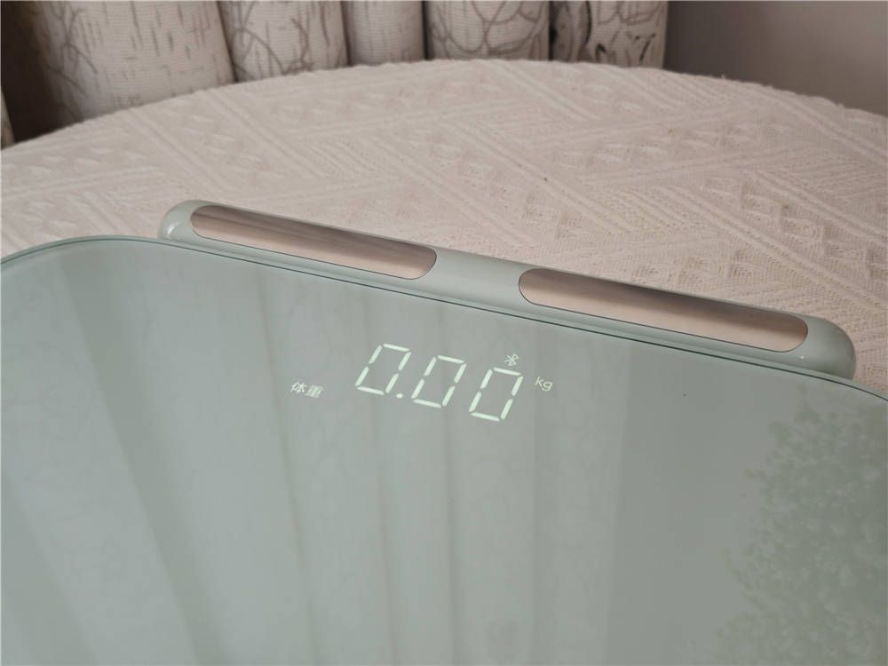 米家八电极体脂秤 S800 正面上方设有LED显示屏,当踏上秤面时,数据会清晰地显示出来,方便读取。秤面显示屏增加手、脚异常检测提示功能,当检测到异常时,橙色灯亮起,提醒用户调整手柄握持或者双脚站姿,让测量更高效。