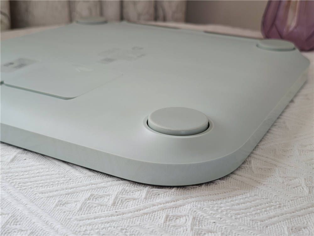 米家八电极体脂秤S800背面设有4颗超大硅胶防滑秤脚,能够确保秤体在使用过程中稳定放置,即使在光滑的地面上也不会轻易滑动,为测量提供安全保障。