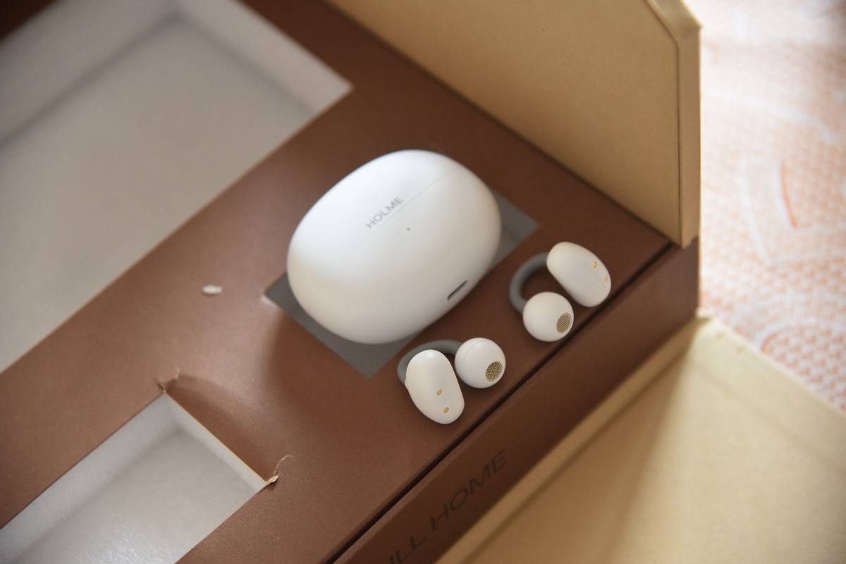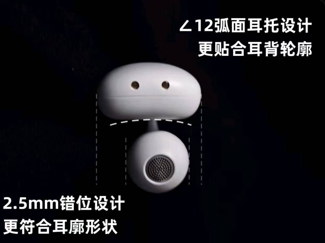 佩戴方面:虹觅的这款耳机在设计上很特别的是采用了的是2.5mm的错位设计,戴上耳机会呈现出一种前高后低的姿态,使得耳机更自然的贴合耳朵,佩戴起来也十分牢固,不用担心耳机会突然掉落,此外,电池部位还被设计成了∠12弧面耳托,与耳背贴合在一起时候非常舒服,戴上耳机也是不痛不痒,再加上单耳仅有4.5g,整体佩戴几乎是无感的!