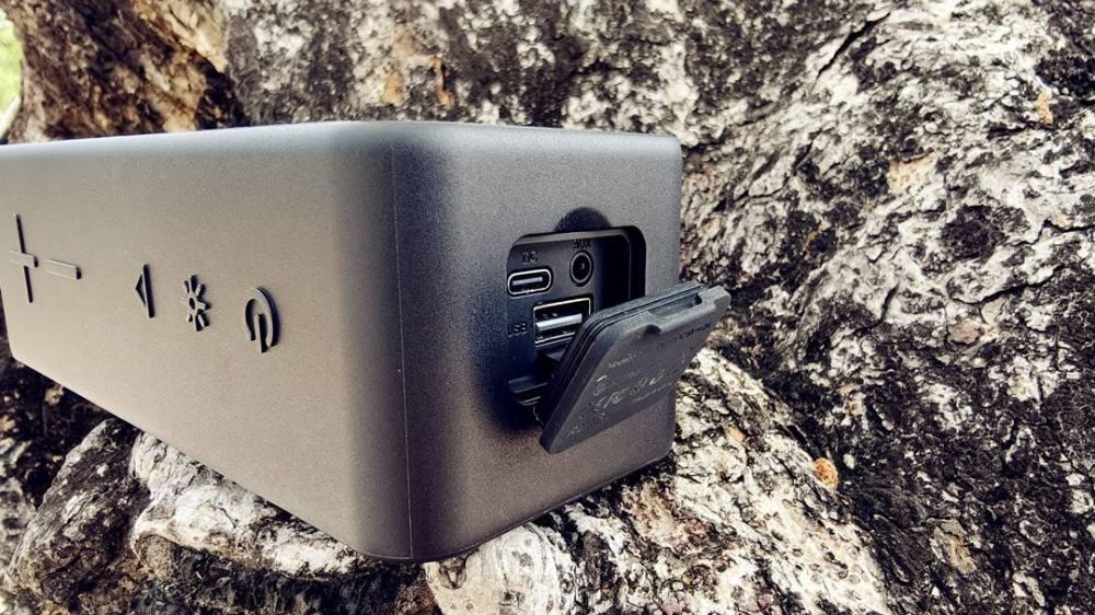 雷登S11接口区域集中在右测部,占用面积很小,加上厚实的硅胶塞可以有效保护音响不会进水进灰尘。雷登S11支持AUX接口、Type-c接口、还提供了一个USB接口,支持蓝牙5.3协议,有线、无线、本地播放都能轻松切换。