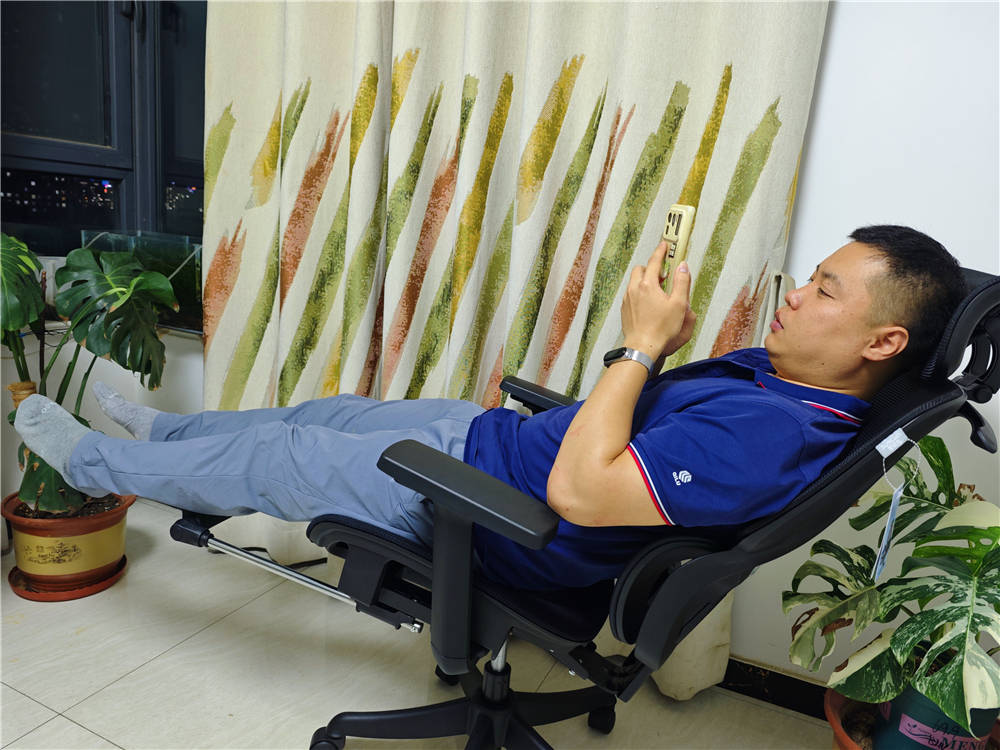SumLush夏草木Fit2人体工学椅配备隐藏式可伸缩腿托,通过腿部承托延伸系统打通头、背、腰、臀、腿五区联动闭环,实现全身姿态协同减压。腿托在后仰、休憩或午睡场景下,可均匀分散大腿与小腿压力,缓解血液淤积和静脉回流负担,显著提升长时间坐卧的舒适度和健康指数。中午在办公室午休,只需将脚托拉出,调整靠背角度,就可以躺着休息,不再会有趴着桌子手被压麻的情况发生。