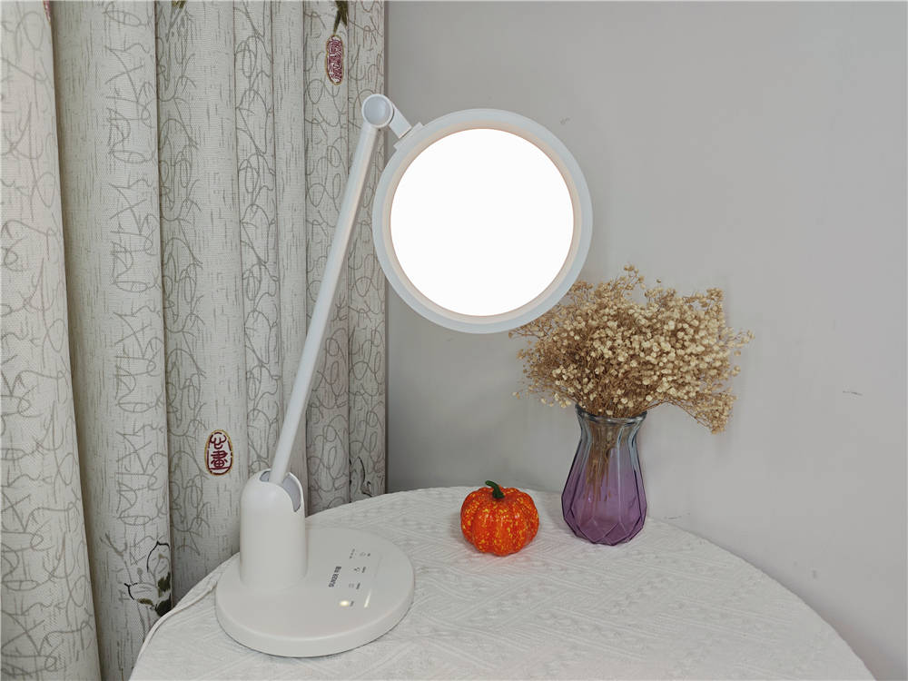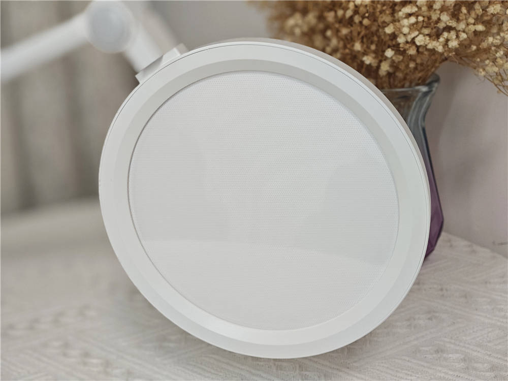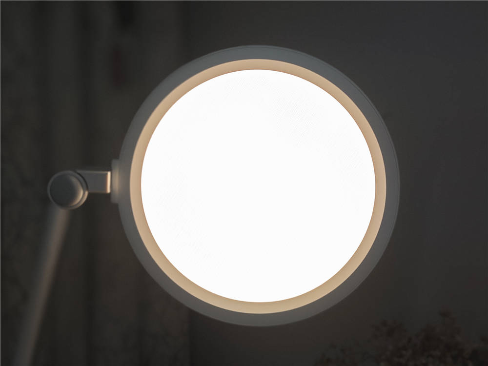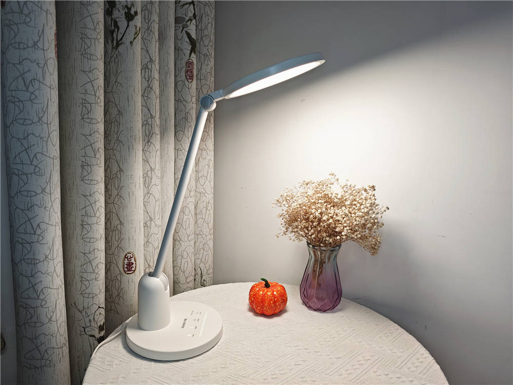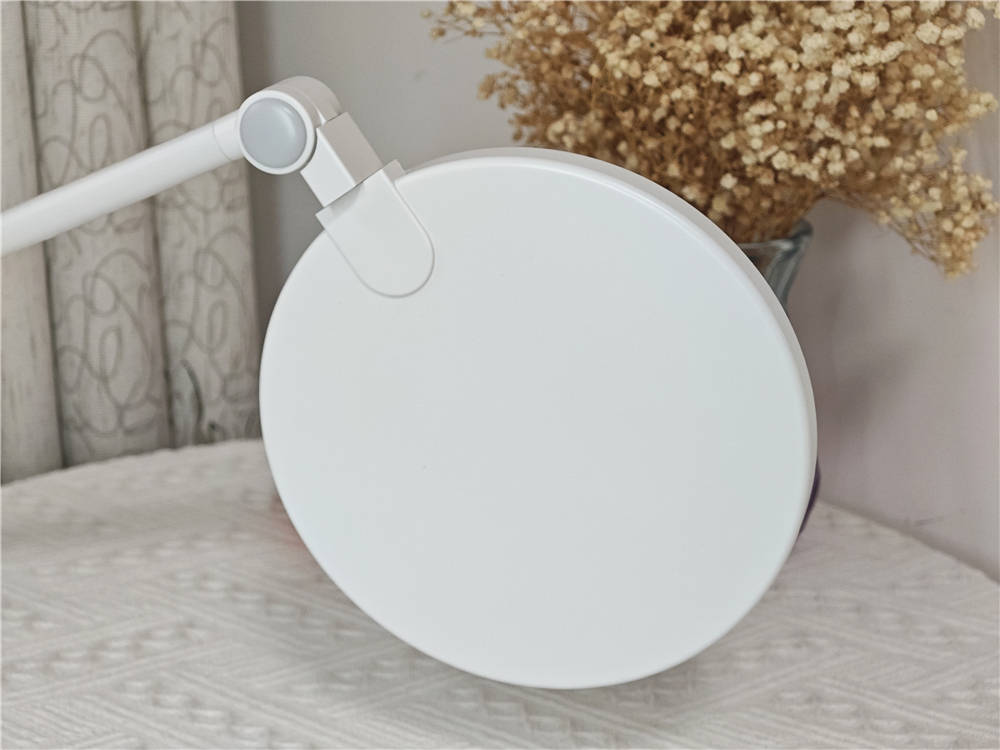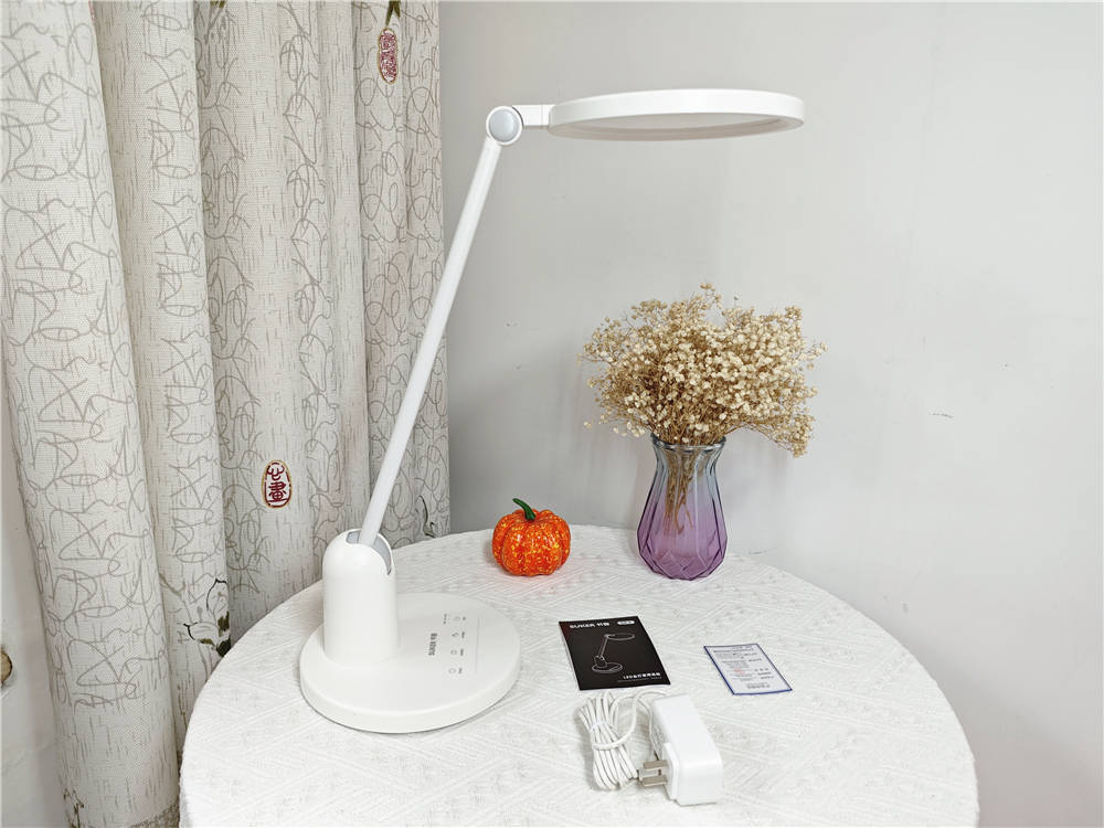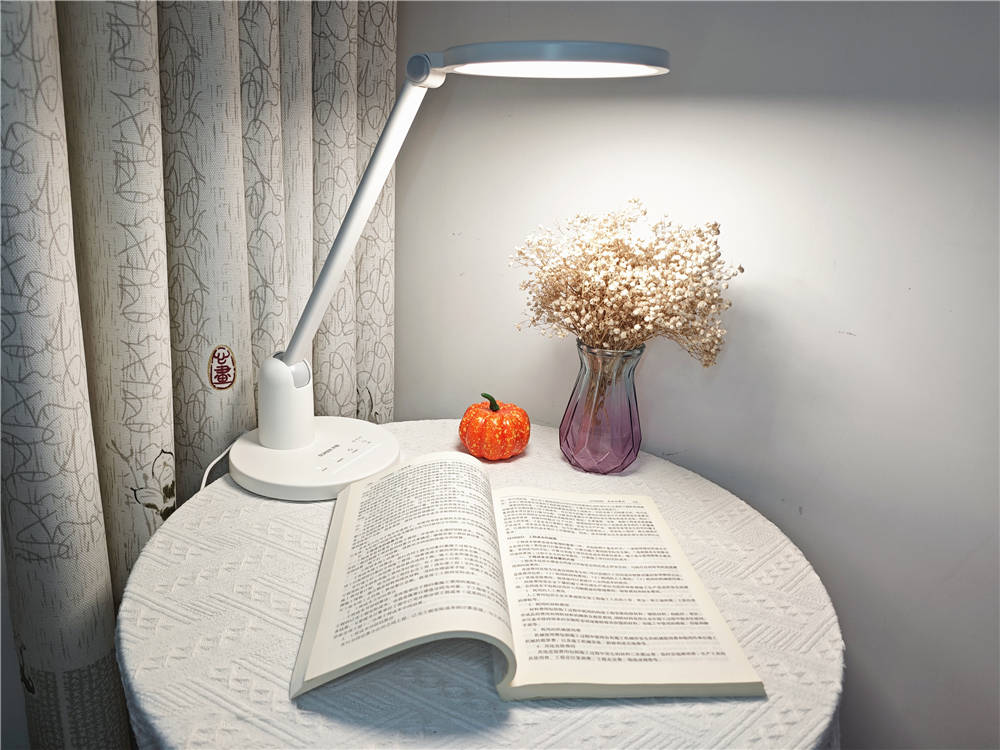 书客SKY护眼台灯通体白色,灯头采用圆盘设计,搭配圆形底座,线条流畅柔和,无论放在书房书桌还是儿童房,都能轻松融入环境,不会显得突兀。