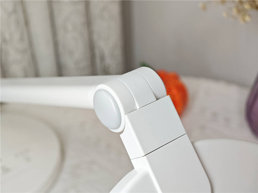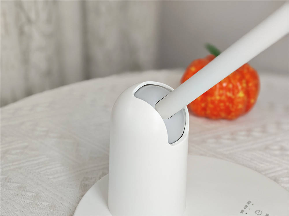 书客SKY护眼台灯的灯臂的部门采用双转轴设计,转轴有一定阻尼感,摸起来质感扎实,摆动时顺滑无卡顿,能灵活调节高度和角度(底座转轴最大调节角度90°,灯头转轴最大调节角度220°,灯头支持90°旋转角度调节),满足阅读、书写等不同场景的照明需求。