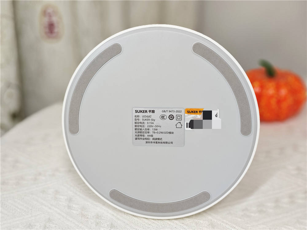 书客SKY护眼台灯底座底部中间贴有产品标签,外围一圈贴有3个长条硅胶防滑垫,可稳固放置在任何光滑桌面,不易滑动歪倒,放心使用。