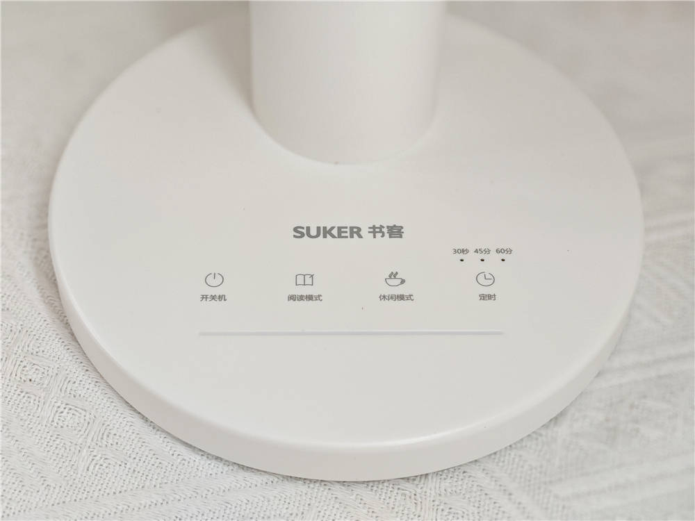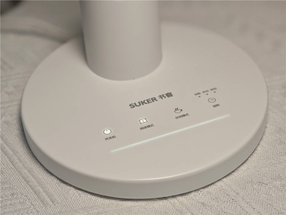 书客SKY护眼台灯底座部分采用金属材质,稳重扎实,保证台灯的稳定性。底座部分预留操作面板,预留开关机、阅读模式、休闲模式、定时、调光条等按键。按键支持触摸操作,用户可以通过触摸按键实现开关、调光、定时等功能,操作简单便捷。