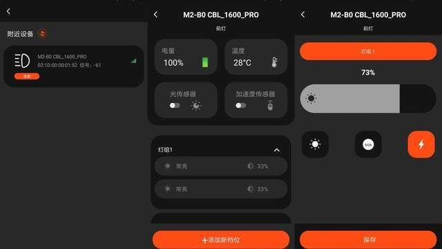 延续一贯的智能设计,迈极炫CBL 1600 PRO磁吸吊装截止线车灯,通过扫描说明书上的二维码下载“Magicshing”APP,按照提示开启对应的功能,在亮灯的情况下完成绑定,不仅可以实时查看车灯电量、温度以及与遥控器的连接状态等,还可以通过自定义亮度实现开机即用,一键开启最大亮度、SOS警示和爆闪功能,我用的最多的就是滑动灯条实现亮度的无级调节,轻松上手体验更专属。