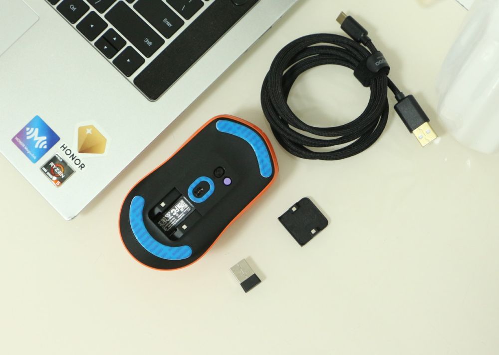 另外,很人性化的是,雷柏还将接收器和无线充电接口进行了二合一的隐藏式设计。