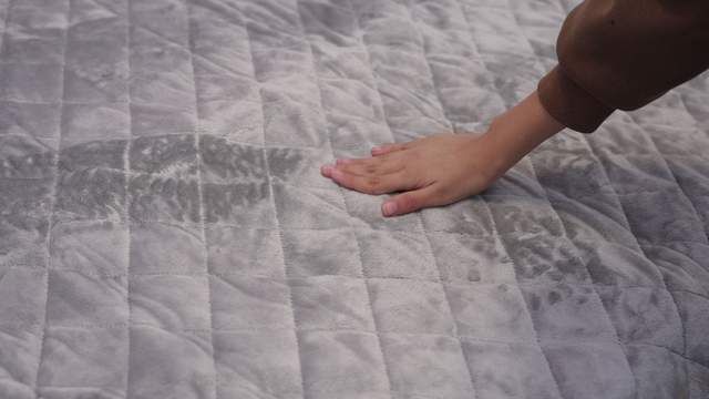 我用红外温度计分别在毯面的头部、腰部、脚部和各个角落位置测量了一下,结果每个位置只要有循环管路的地方,温度都是出不多的;用手摸上去,也几乎没有“温差感”,不管是平躺还是侧睡,全身都能被均匀的暖意裹住。这要得益于它的“聚热生物网膜”技术,能让热量快速扩散,以前用过的水暖毯里是没有的。现在冬天睡觉,再也不用蜷着身子“追着热区跑”,睡得特别踏实。