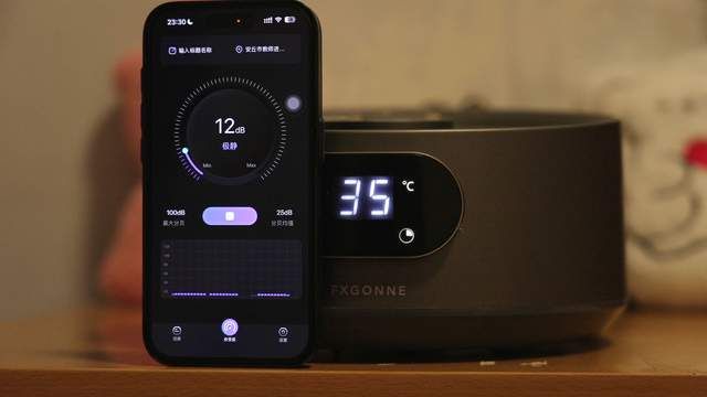 宫菱的静音效果做的也是非常不错,用手机的分贝检测测试了一下,运行中只有12db。超安静,晚上把主机放在床头柜,完全听不到什么声音,比家里的加湿器还安静,完全不影响睡眠。