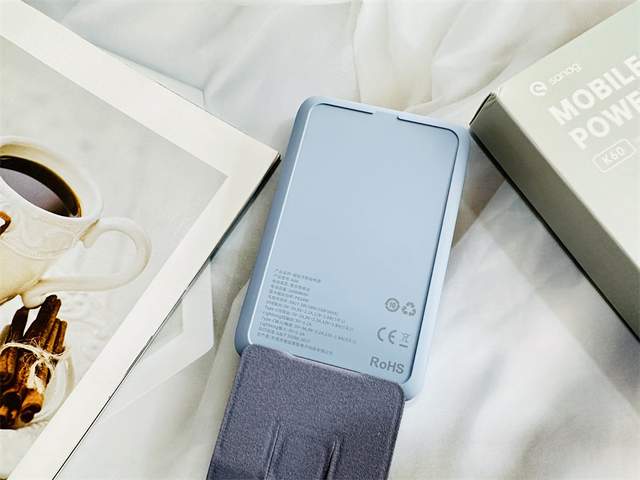 sanag塞那K60磁吸充电宝既是充电宝,又是手机支架,背面的磁吸折叠块展开,秒变手机支架。我们可以一边为手机进行无线充电一边追剧,真的是细节满满。